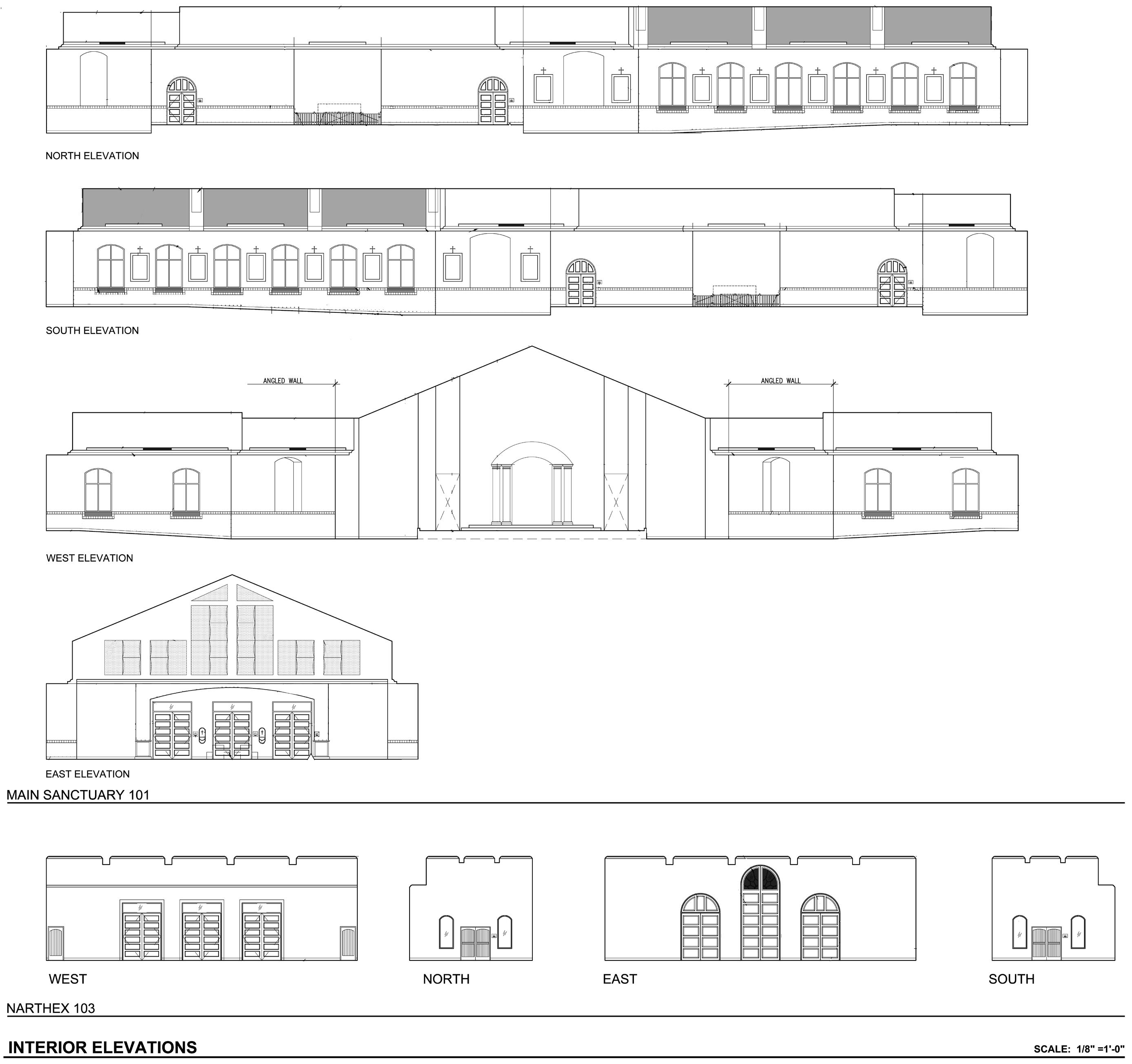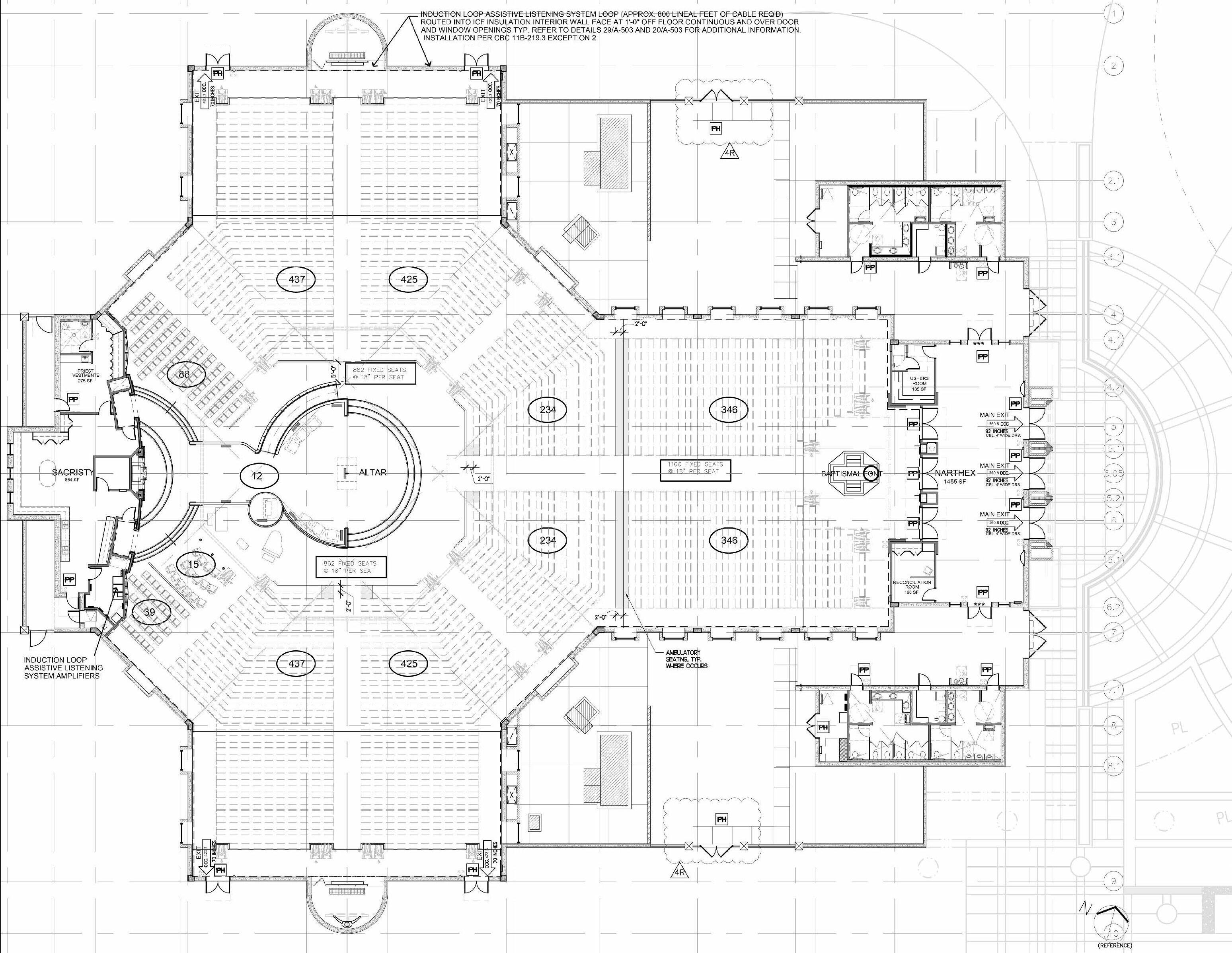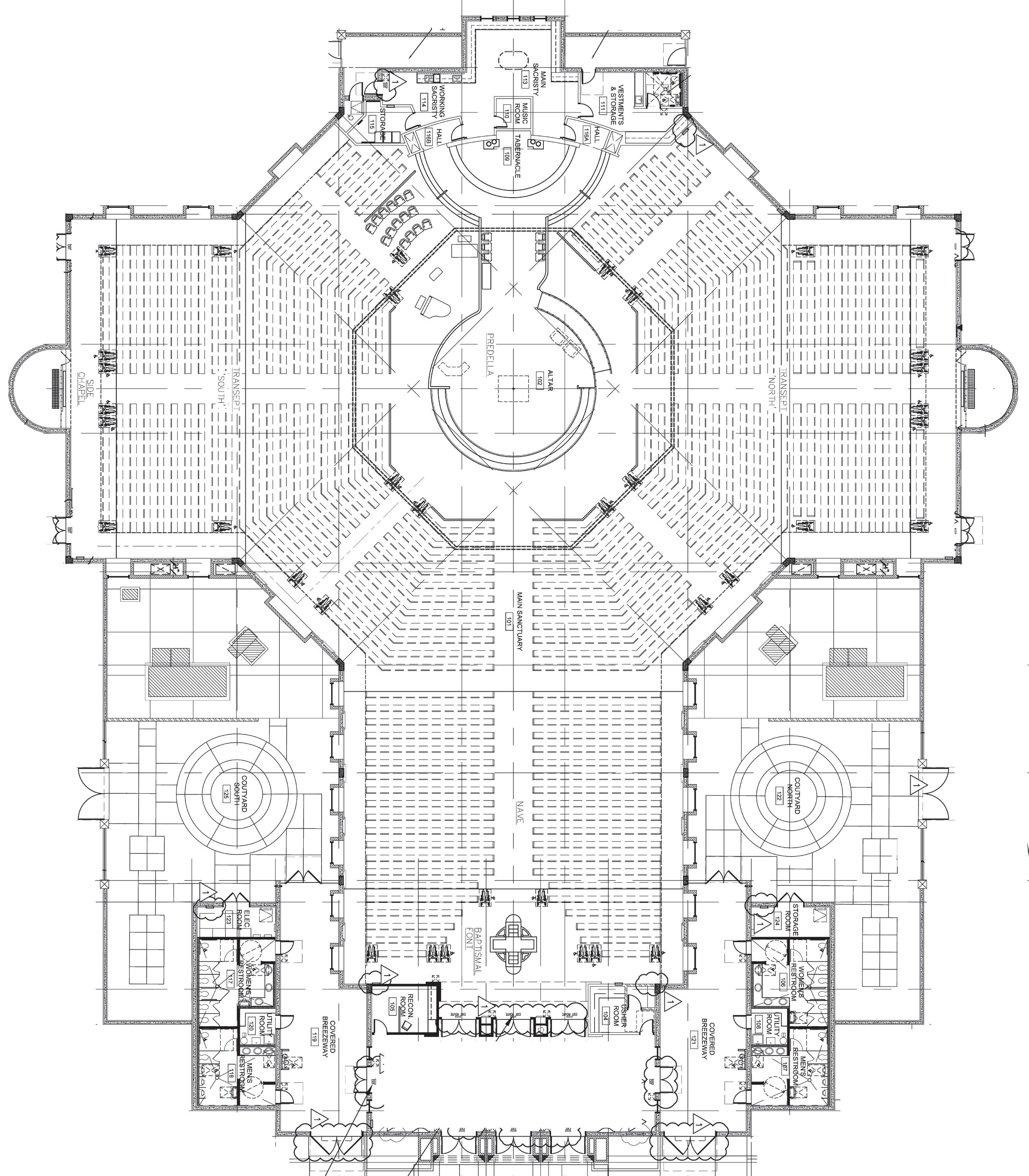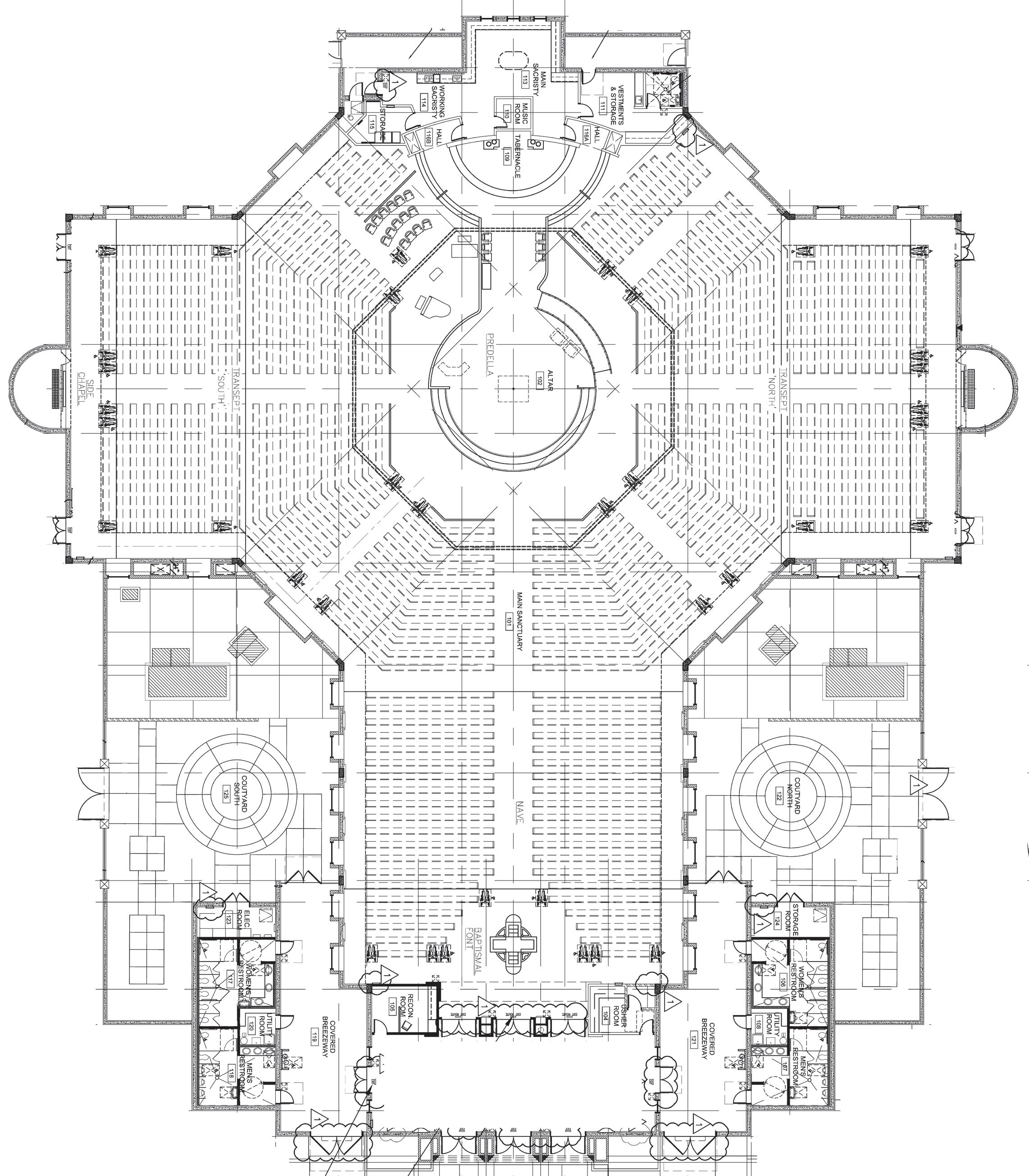 AISLES, PEWS, FRONTALS, COMMUNION STATIONS, FLEXIBLE SEATING FLOOR PLAN
