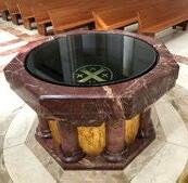 The altar is the most holy object in the church, which is also the focus of the Mass. It deserves the greatest attention to design as it should be constructed with the finest materials possible and have a very elegant design. The altar should also be a permanent part of the church, which means it will have its own foundations, and receive its own separate consecration.