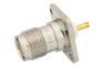300 75 Ohm N Connectors Connection Method Product Image Attachment Cable/Contact Coax Type / Termination Type Model No. PRICE R O W 1-24 25-49 50-99 100 + Female, Bulkhead Mount Terminal Solder Solder Cup with .380 inch Diameter PE4506 $23.99 $22.79 $21.59 $20.63 83 Solder Cup with .640 inch DD Hole PE4505 $36.19 $34.38 $32.57 $31.12 84 Female, 4 Hole Flange Mount Terminal Solder Solder Cup with .718 inch Hole Spacing PE4503 $22.59 $21.46 $20.33 $19.43 85