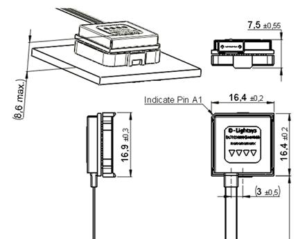 D-Lightsys® multi-channel modules are available in two packages: a pluggable and a solderable one, both with extra small form factors. The solderable package is especially thin, with an on-board height of less than 4 mm.