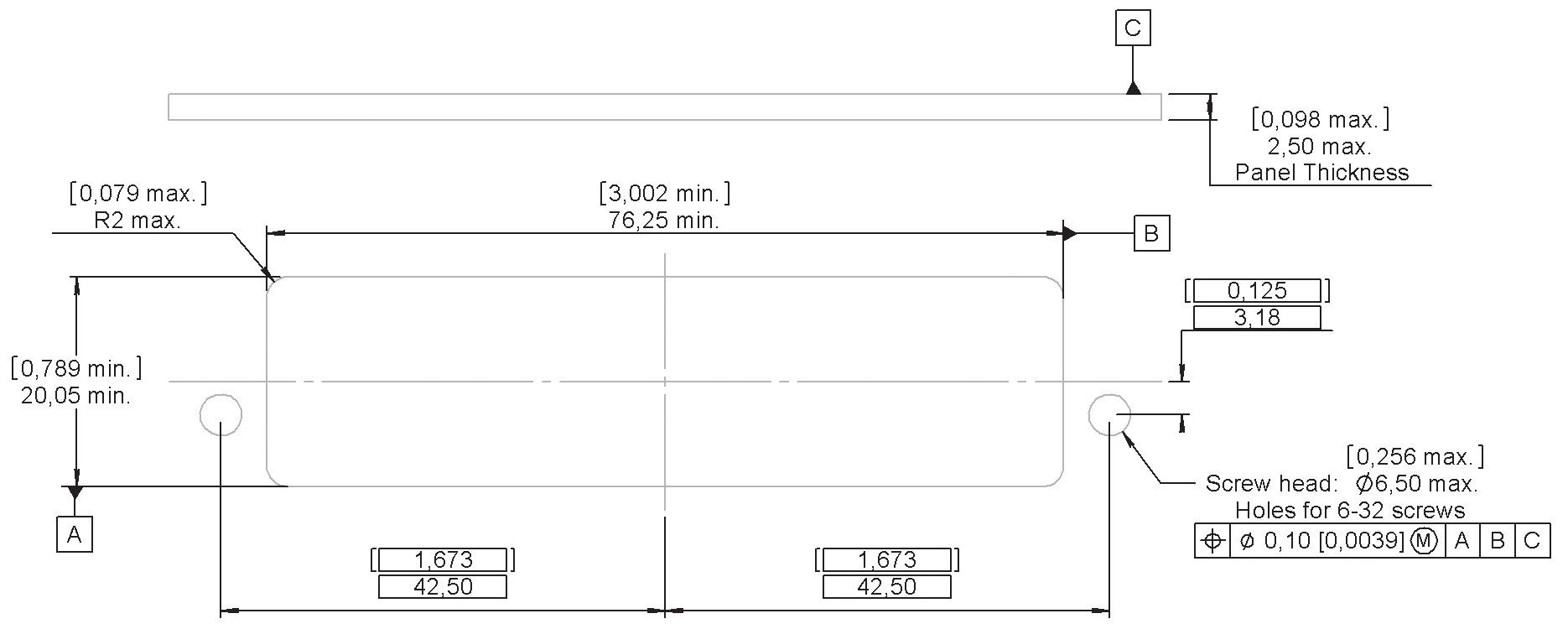 Rear Panel Mounting Receptacle: 2 Self-Locking Threads for 6-32 UNC 2A Screws