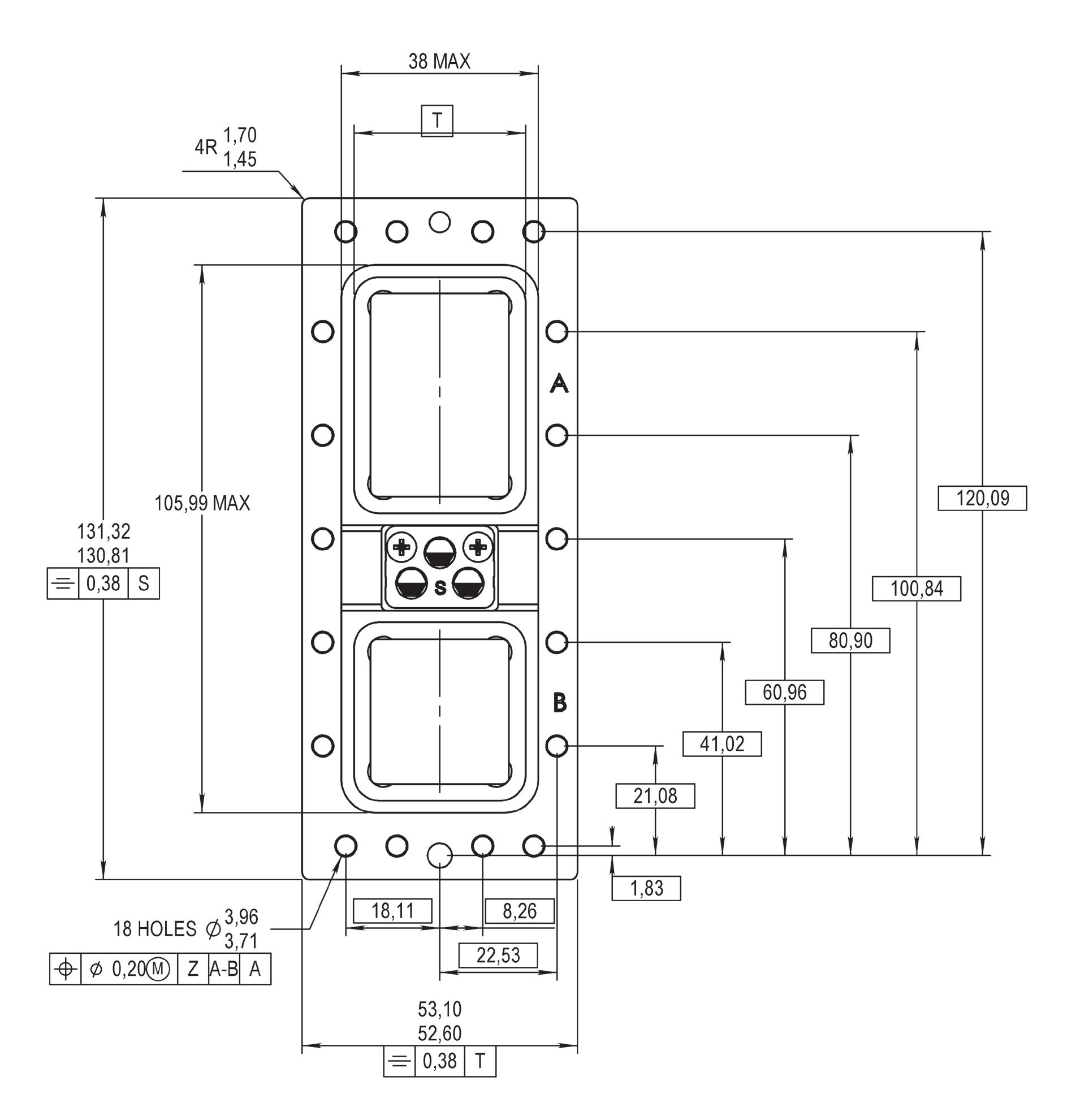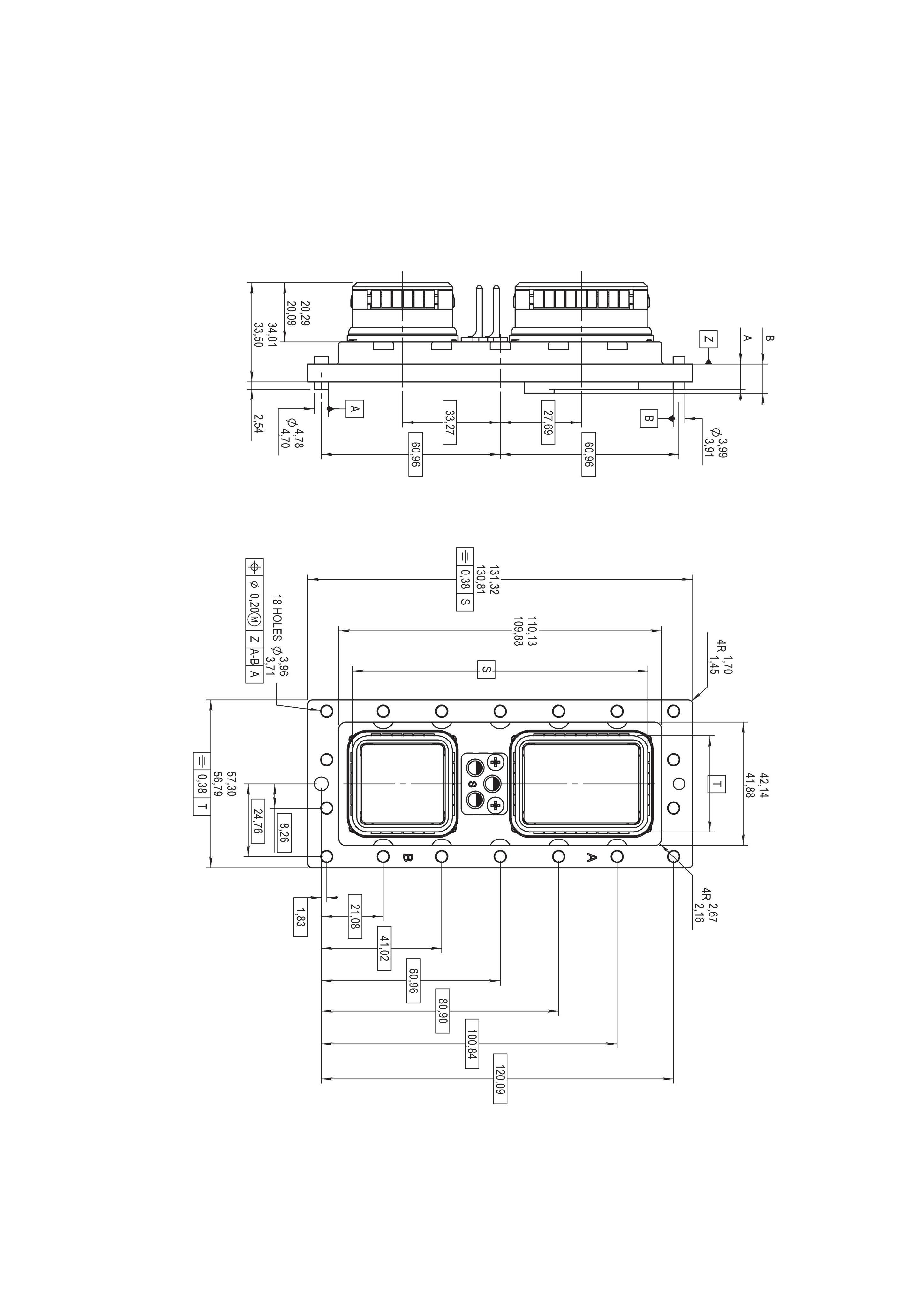 The table below gives A and B dimension values (A and B = distance between the front flange of the connector and the rear face of the insert �