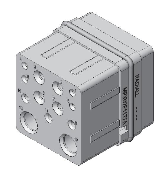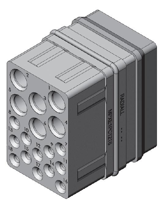 The Radiall MPX series is a robust rectangular connector designed to meet all the requirements of the MIL-DTL-83527B specification. The design conforms to the EN 3682 European Standard as well. This series is well suited for military and commercial aircraft applications where harsh environmental issues are a concern Connectors, shells, inserts termination modules and contacts are sold separately or fully assembled
