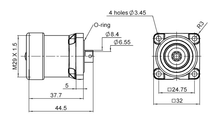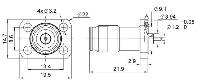 • Jack: square flange, bulkhead