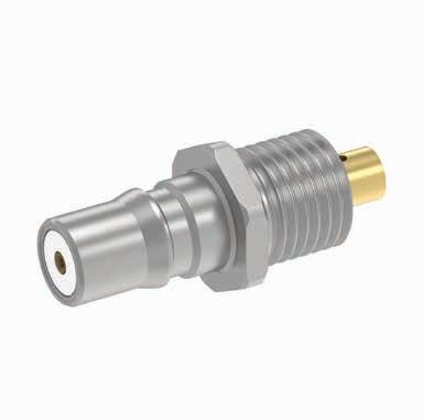 QRE™ is made of high grade stainless steel 316L, with Teflon coated fluoro-silicone sealing o-rings which make the QRE™ interface waterproof and ultra resistant to chemical aggression and corrosion The outer slotted spring contact inspired from the QMA design was reinforced to provide reliable electrical contact during vibration and shock conditions. All QRE™ material were chosen and optimized to operate within the extended temperature range typical in Mil-Aerospace applications � Its superior latching mechanism provides the advantage of a snap-on connector while ensuring a very robust and secure connection� The retention force of the interface is 3 times higher than the QMA � With similar dimensions, QRE™ offers high density integration capabilities like QMA. In addition, a specific tool has been designed to easily disconnect QRE™ plugs on high density applications such as active array radar modules or panels