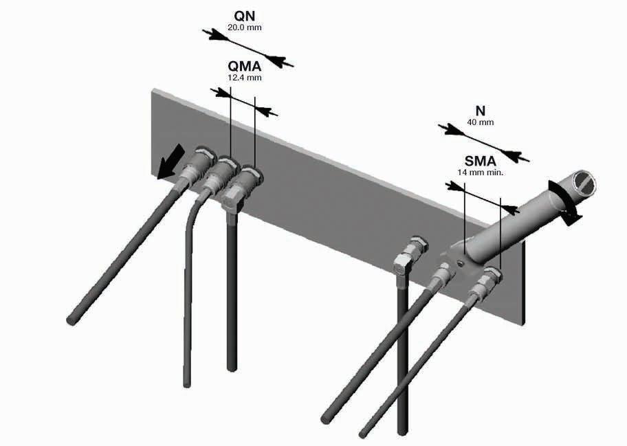 QN and QMA connectors have a lower space requirement since space for the use of a torque wrench is not necessary Therefore the distance between connectors is optimized on the panel
