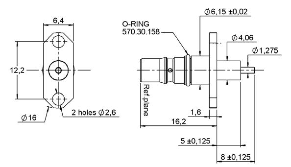 QRE™ is made of high grade stainless steel 316L, with Teflon coated fluoro-silicone sealing o-rings which make the QRE™ interface waterproof and ultra resistant to chemical aggression and corrosion The outer slotted spring contact inspired from the QMA design was reinforced to provide reliable electrical contact during vibration and shock conditions. All QRE™ material were chosen and optimized to operate within the extended temperature range typical in Mil-Aerospace applications � Its superior latching mechanism provides the advantage of a snap-on connector while ensuring a very robust and secure connection� The retention force of the interface is 3 times higher than the QMA � With similar dimensions, QRE™ offers high density integration capabilities like QMA. In addition, a specific tool has been designed to easily disconnect QRE™ plugs on high density applications such as active array radar modules or panels