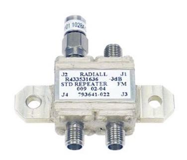 An active component as an amplifier can be inserted in a microwave line; this amplifier is connected to a 50 Ohm termination (as a booster in stand-by status) when not inserted in the main coaxial line.