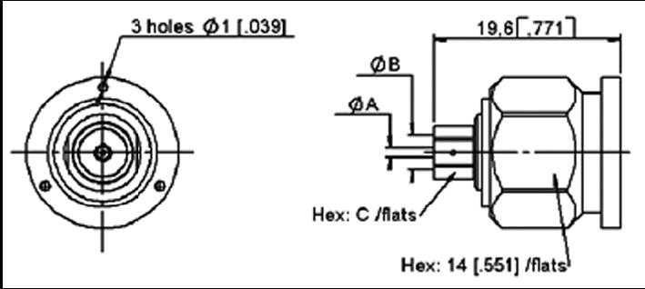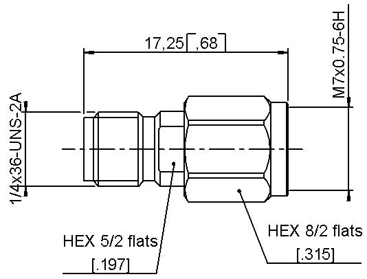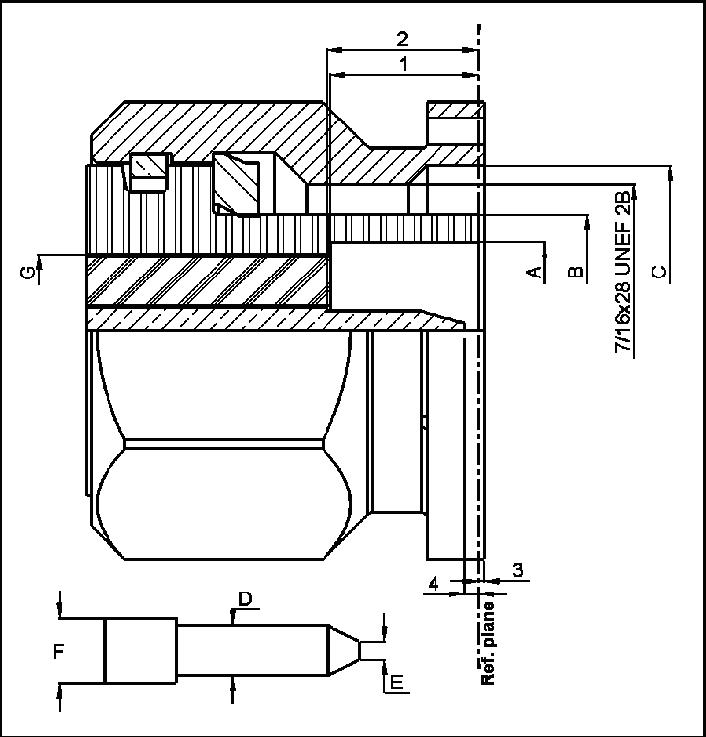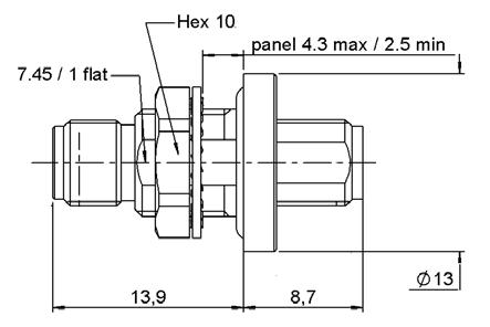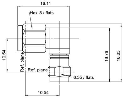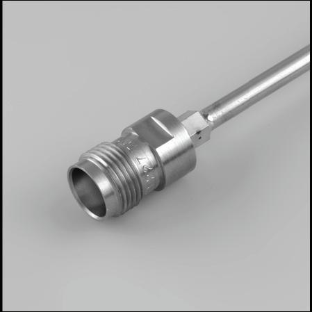 2�4 mm connectors are 50 ohm precision connectors designed for use to 50 GHz� The design eliminates the fragility of the SMA and 2.92 mm connectors by increasing the outer wall thickness and strengthening the female fingers. The outer conductor measures 2.4 mm and the robust wall of the connector body is designed to engage before the center conductor, assuring a rugged, repeatable mating interface. The male connectors are provided with a 8 mm (5/16 in.) hex coupling nut so they can be properly torqued.