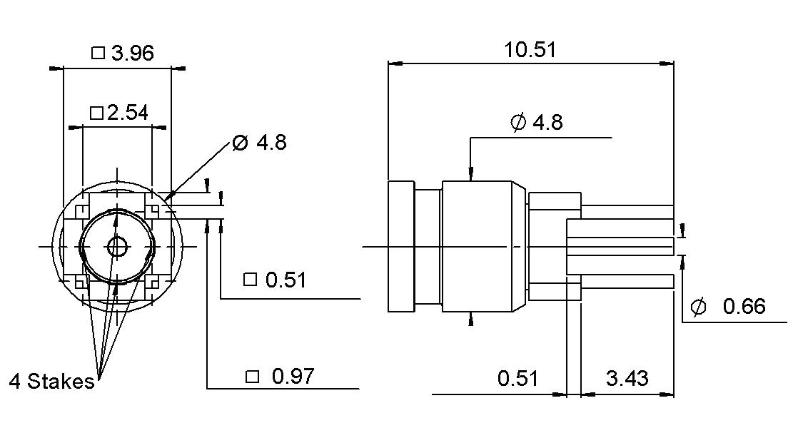STRAIGHT RECEPTACLES, PIN & PASTE MOUNT (MALE CENTER CONTACT)