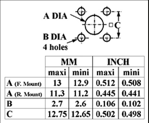 LETTER MM INCH MIN MAX MIN MAX A 9 05 9 19 356 362 B 4 75 5 25 187 207 C 1 20 1 95 047 077 D 4 4 5 1 173 201 E 6 8 9 268 354 F 10 9 11 2 429 441 G DIA 6 98 7 02 275 276 H DIA 8 �03 8 �13 � 316 � 320 J DIA 8 53 8 73 336 344 K DIA 15 65 15 85 616 624 L DIA 1�96 2 �077 �079