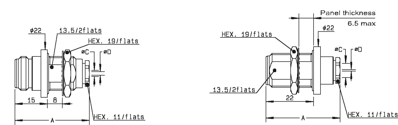 DC - 11 GHz (standard N) DC - 18 GHz (N 18 GHz)