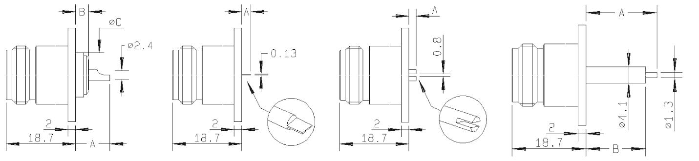 PART NUMBER CAPTIVE CENTER CONTACT PANEL DRILLING PACKAGING NOTE R143 654 000 Yes P06 Unit Solder Pot Contact PART NUMBER CAPTIVE CENTER CONTACT PANEL DRILLING PACKAGING NOTE R143 440 000 Yes P03 Unit Solder Pot Contact PART NUMBER FIG. FINISH PACKAGING NOTE R143 812 000 1 Nickel Unit Male with Chain R143 835 000 2 100 Pieces Female with Chain