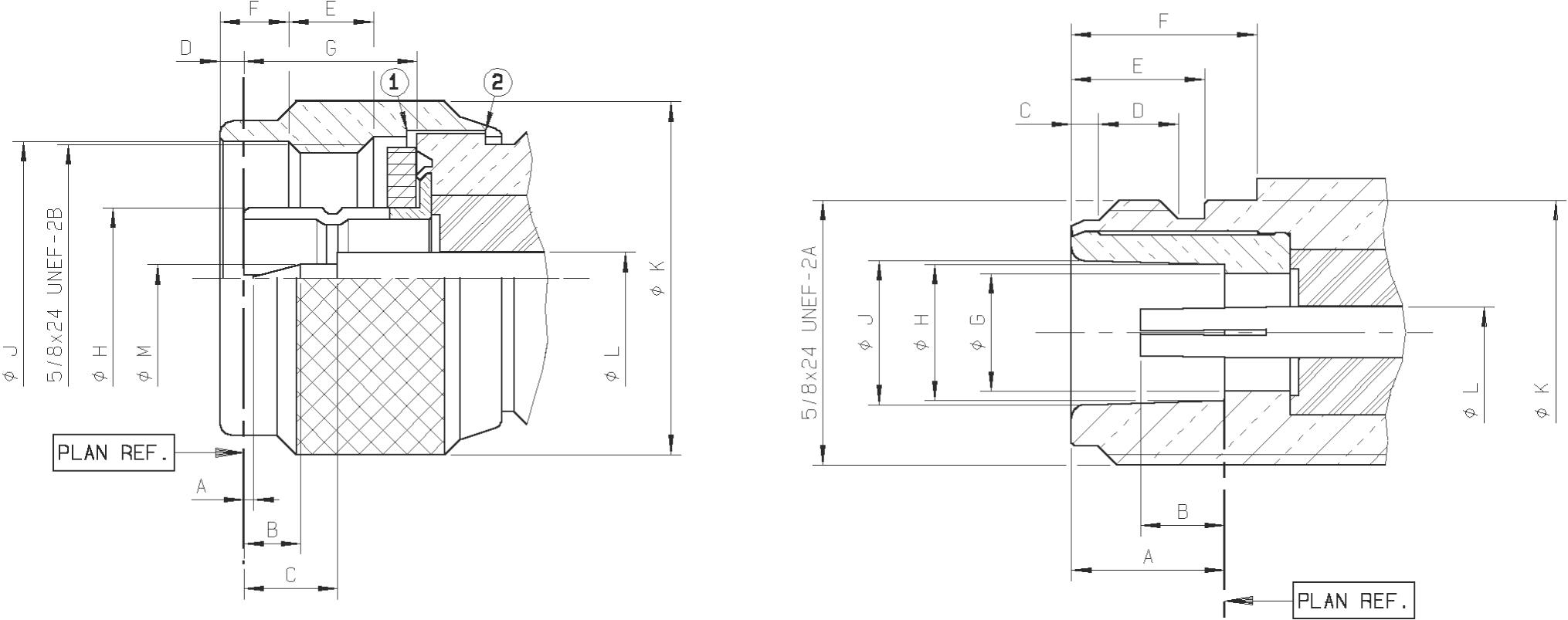 Notes Statistics dimensions: .0539 .0055 (.0594 max)/(1.37 0.14)(1.51 max) 1) Coupling nut against on datum 1 2) Coupling nut against on datum 2