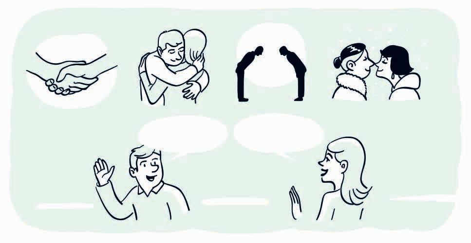 • Kako se pozdravljajo ljudje v raznih kulturah? Predstavite nekaj primerov.