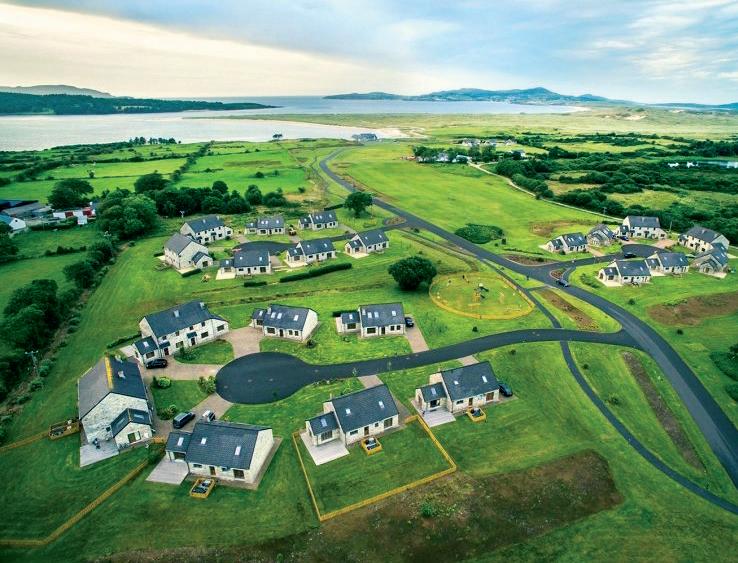 Unterkunft: Resort-Anlage mit Restaurant, Pub, Parkplatz, Tennisplatz, Basketballfeld und Kinderspielplatz. Der ein Kilometer lange Holzsteg führt vom Haupthaus den Dünen entlang zu den schönen Sandstränden der Grafschaft Donegal.