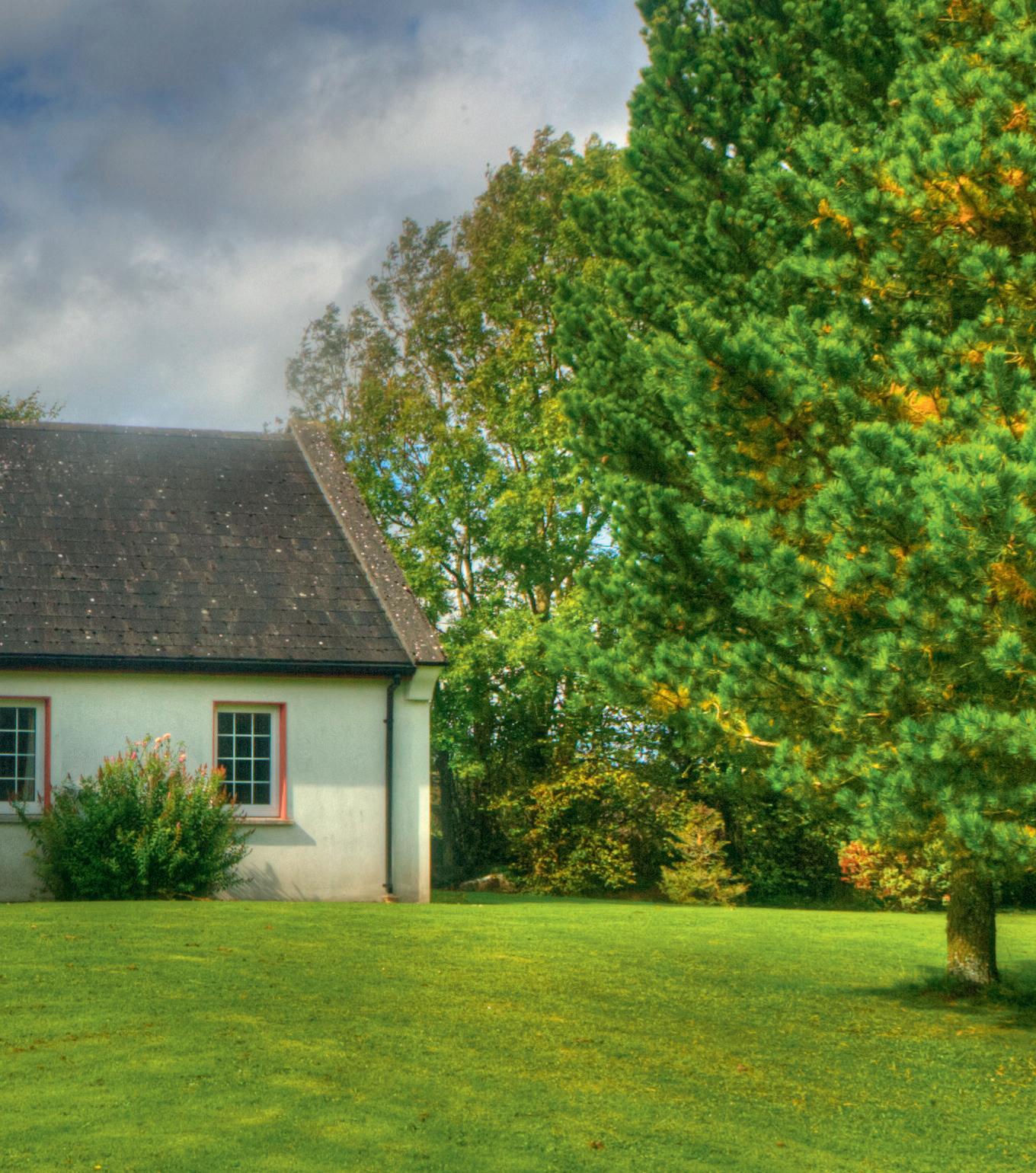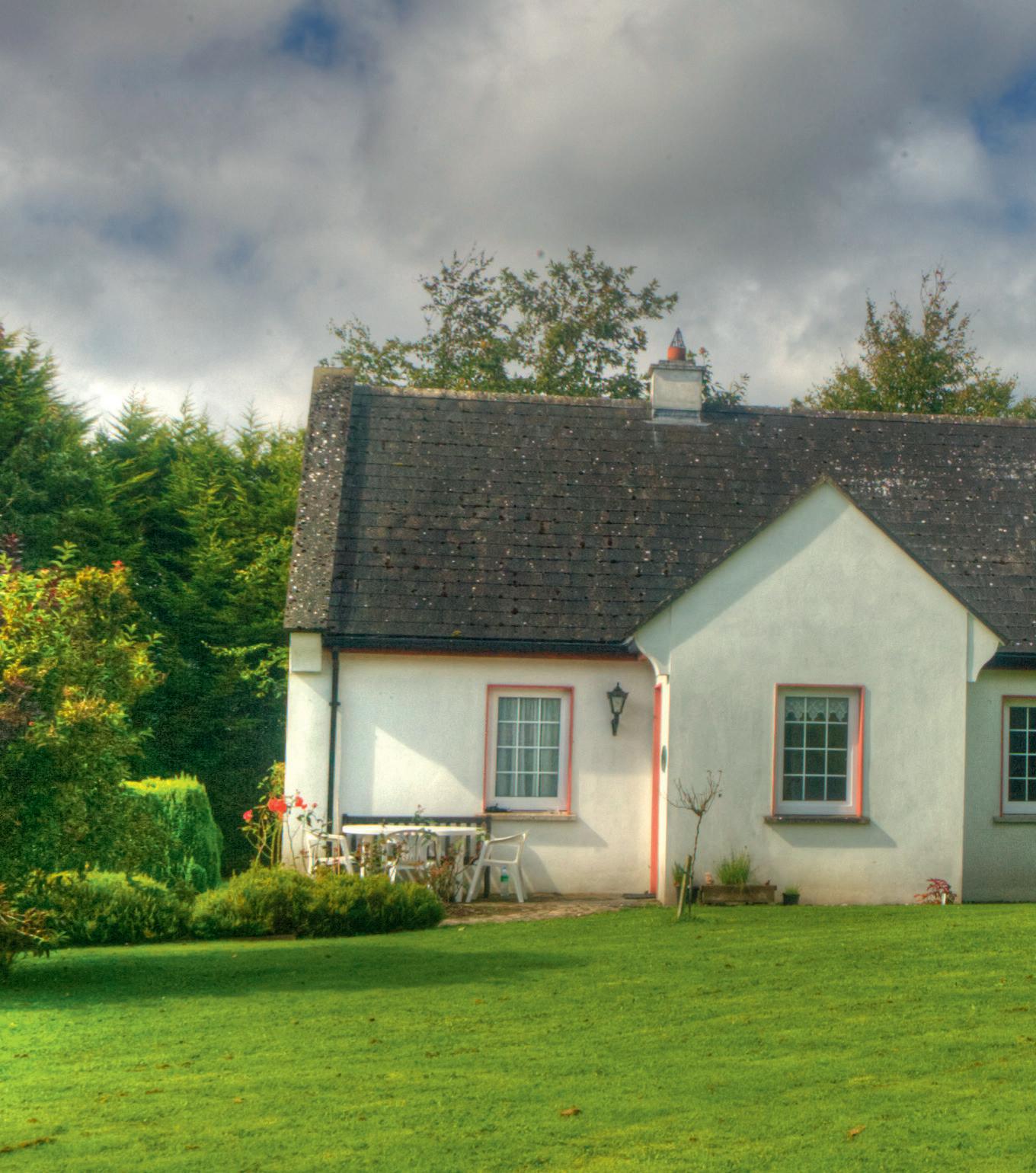 Bei gleichem Grundriss wie die übrigen Ferienhäuser, ist auch das Blue Bell Cottage freistehend und mit viel Freiraum in den grossen Park/Garten von Clonmoylan eingebettet.
