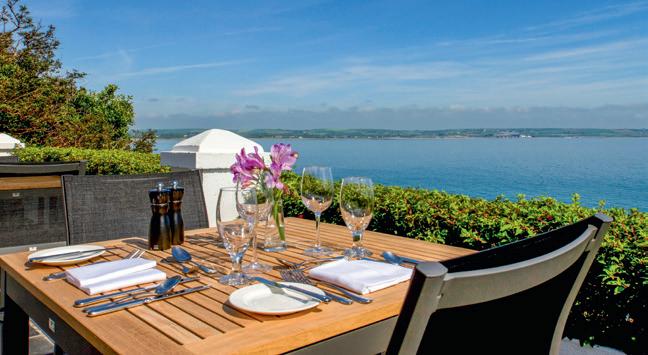 Wundervoller Ausblick in den Garten und zum Meer. Zwei Doppelschlafzimmer mit jeweils Bad und Dusche/WC, ein Einzelzimmer und separates Gäste-WC.