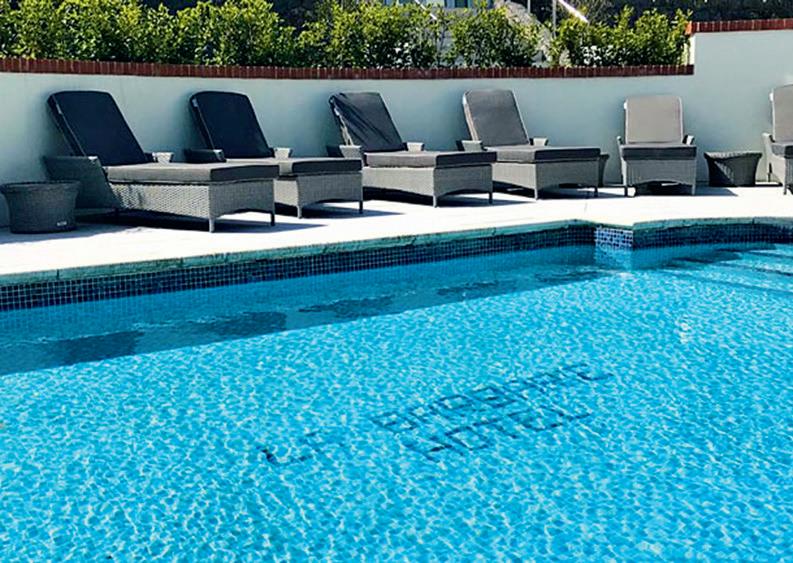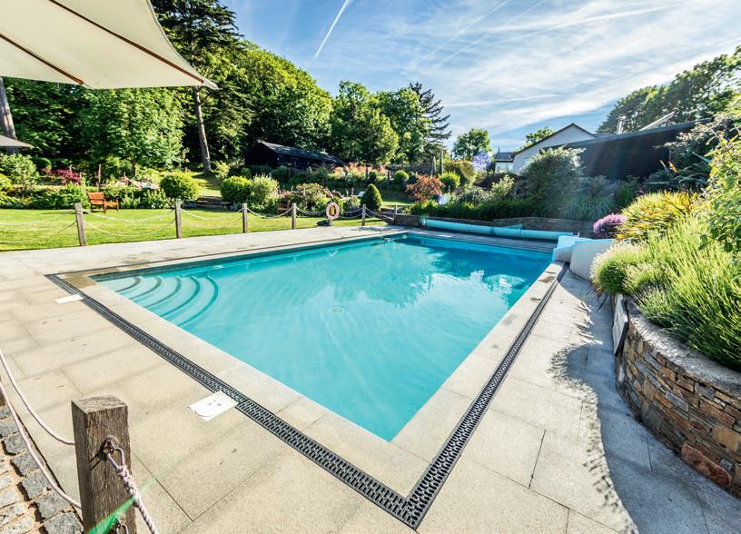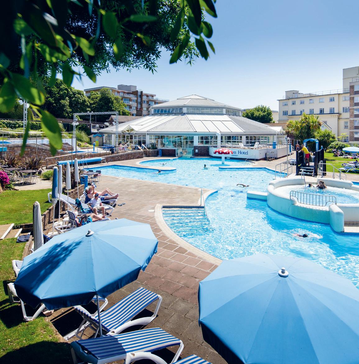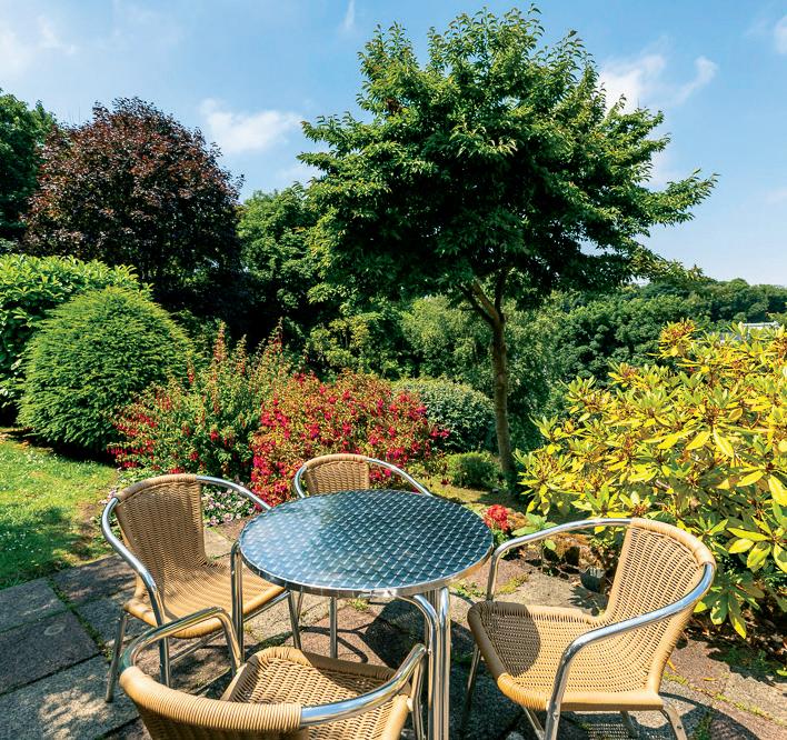 Im grossen, üppigen Garten befinden sich ein Bistro, ein Aussenschwimmbad (geöffnet Mai bis September) mit Liegeterrasse, Jacuzzi, Kinderbecken und Wasserrutsche.