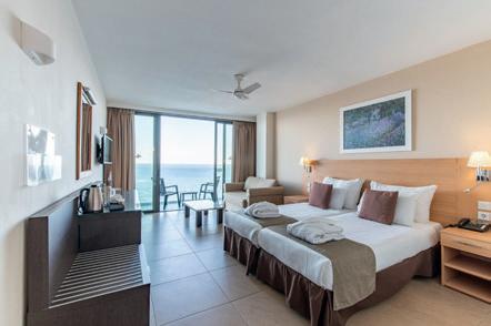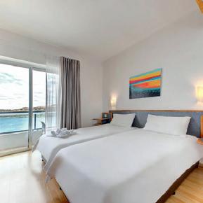 Standard Zimmer: Alle mit Bad oder Dusche/WC, TV, Telefon, Kühlschrank, Safe, Wasserkocher, Haartrockner, Bademantel und Hausschuhe, Klimaanlage und Balkon. Diese Zimmer liegen in den unteren Etagen. Gegen Zuschlag mit Meersicht buchbar.