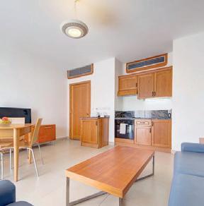 Apartments: 94, modern und komfortabel eingerichtet. Alle mit Wohn-/Esszimmer, wahlweise mit einem oder zwei Schlafzimmern und gegen Zuschlag mit Meersicht buchbar. Zur Ausstattung gehören eine gut ausgerüstete Kitchenette, Bad oder Dusche/ WC, TV, Telefon, Safe (gegen Gebühr), Haartrockner, Klimaanlage, Balkon.
