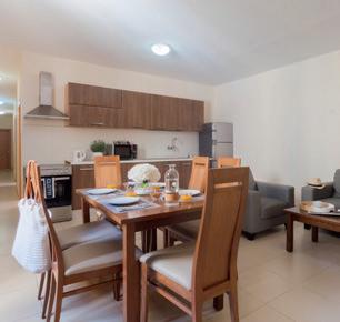 Apartments: 26. Alle wahlweise mit ein, zwei oder drei Schlafzimmern buchbar. Alle mit Wohnund Essbereich mit TV und gut ausgestatteter Küche. Zur weiteren Infrastruktur gehören Telefon, Deckenventilatoren, Klimaanlage (gegen Gebühr), Bügeleisen und Bügelbrett.