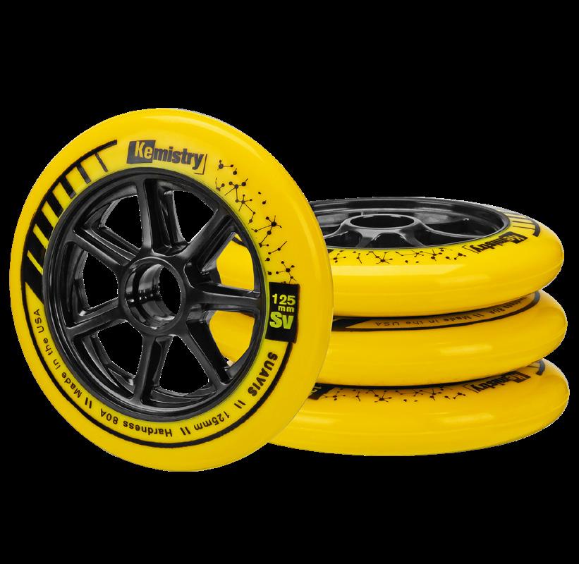 •Indoor/Outdoor Fitness •Extra High Rebound Urethane •USA Made and Poured •High Impact Lightweight Core •Replacement Compatible KEMISTRY SUAVIS WHEELS BF8080KSY Yellow 80mm 80A BF8480KSY Yellow 84mm 80A BF7680KSY 76mm 80A BF8085KSP Purple 80mm 85A BF11080KSY Yellow 110mm 80A BF12580KSY Yellow 125mm 80A