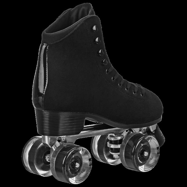 \\ ADULT Blend in with your surroundings while wearing this new stealth Driftr. Built for enjoying the outdoors. U774BK Sizes 3-12 BOOT Brushed Suede Boot LINER Suede Leather Interior Lining TONGUE Comfort Deluxe Tongue Padding TOE Reinforced Heel and Toe CHASSIS Aluminum Chassis & Trucks w/ PU Cushions BEARING Silver-5 Speed Rated WHEEL Kemistry™ Glide 65mm X 33mm 82A