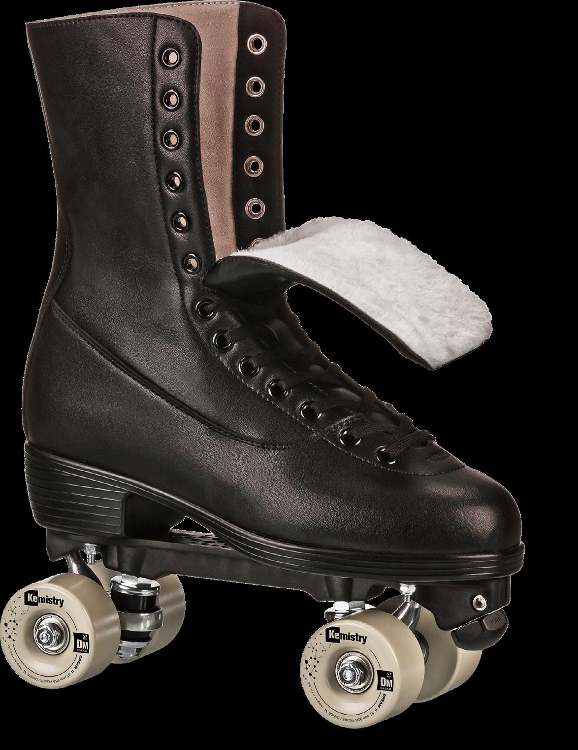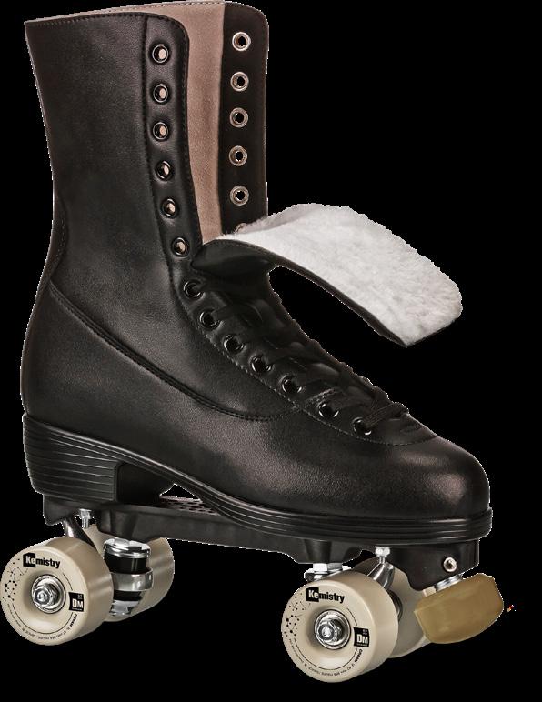 RE372B Sizes 5M(6W) - 13M(14W) BOOT Artistic Height Leather Boot TONGUE Deluxe Memory Padded Tongue SOLE Leather Hybrid Sole TOE STOP Adjustable w/ Plug CHASSIS Polished Aluminum w/ Jump Bar •Adjustable Toe Stop Compatible •Aluminum Trucks WHEELS Kemstry™ Radical, 70mm X 35mm 83A BEARINGS Bevo™ Gold-7 Race Rated (chrome)