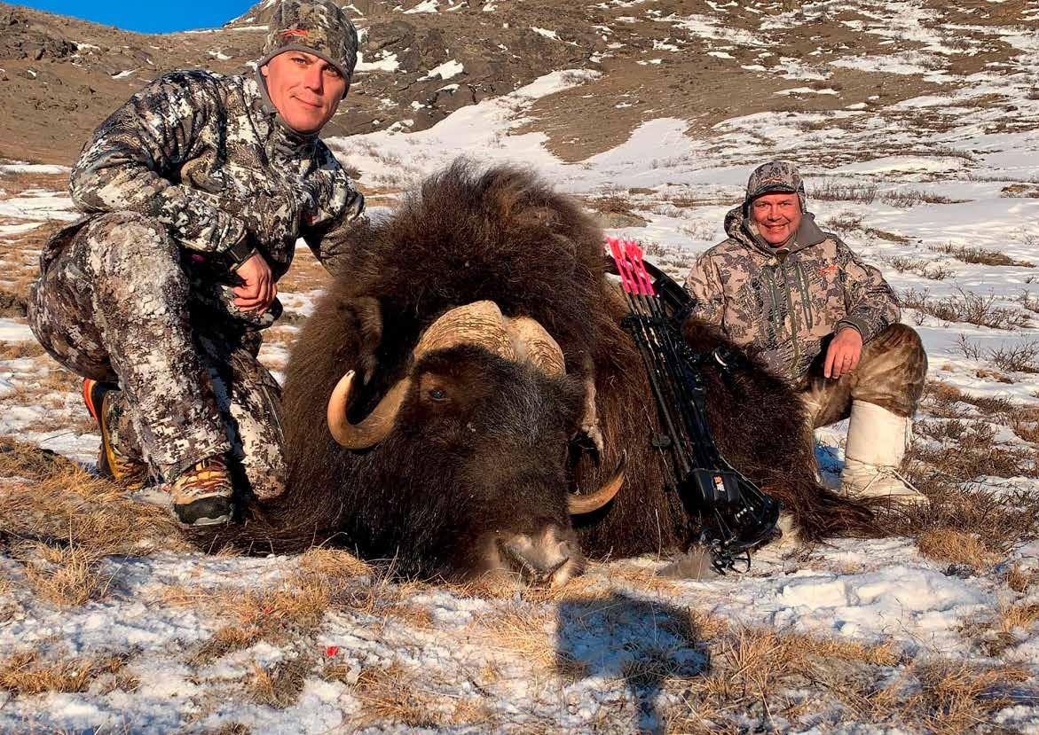 À noter : Nous avons tiré un Bœuf musqué à l’arc avec un chasseur Français probablement le premier !