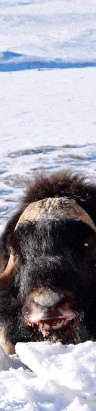 Le territoire par son abondance en nourriture a une grande densité de gibier et le Bœuf Musqué s’y plait énormément.