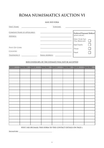 ROMA NUMISMATICS AUCTION VI MAIL BID FORM First Name: