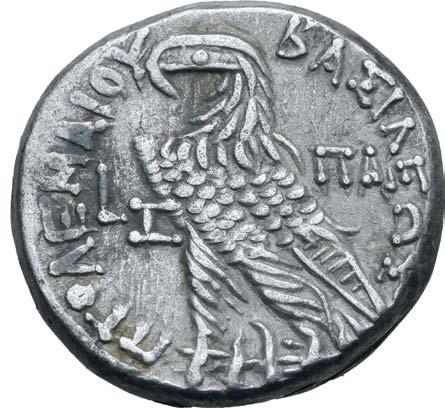eagle with closed wings standing to left on thunderbolt; P above ΠΑΡ monogram to left. CPE 168; Svoronos 255, pl. ix 11 & pl. xxvii 18 & 24; SNG Copenhagen 70-71; BMC -. 14.19g, 26mm, 12h.