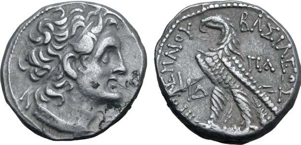 ΒΑΣΙΛΕΩΣ, eagle with closed wings standing to left on thunderbolt; ∆ between legs. CPE B218; Svoronos 438; SNG Copenhagen 156. 19.22g, 31mm, 12h.