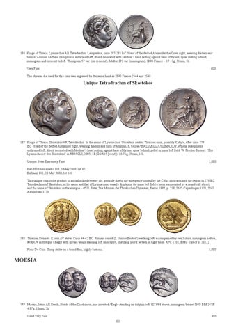 Ex LHS Numismatic 103, 5 May 2009, lot 67; Ex Lanz 141, 26 May 2008, lot 101. This unique coin is the product of an unfinished reverse die, possible due to the emergency caused by the Celtic incursion into the region in 279 BC. Tetradrachms of Skostokos, in his name and that of Lysimachos, usually display in the inner left field a herm surmounted by a round cult object, and the name of Skostokos in the exergue - cf. U. Peter, Die Münzen der Thrakischen Dynasten, Berlin 1997, p. 218; SNG Copenhagen 1171; SNG Ashmolean 3779.
