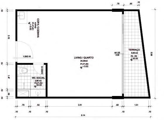 do piso: 17 m² (o módulo). do mezanino: 13 m² (do módulo).