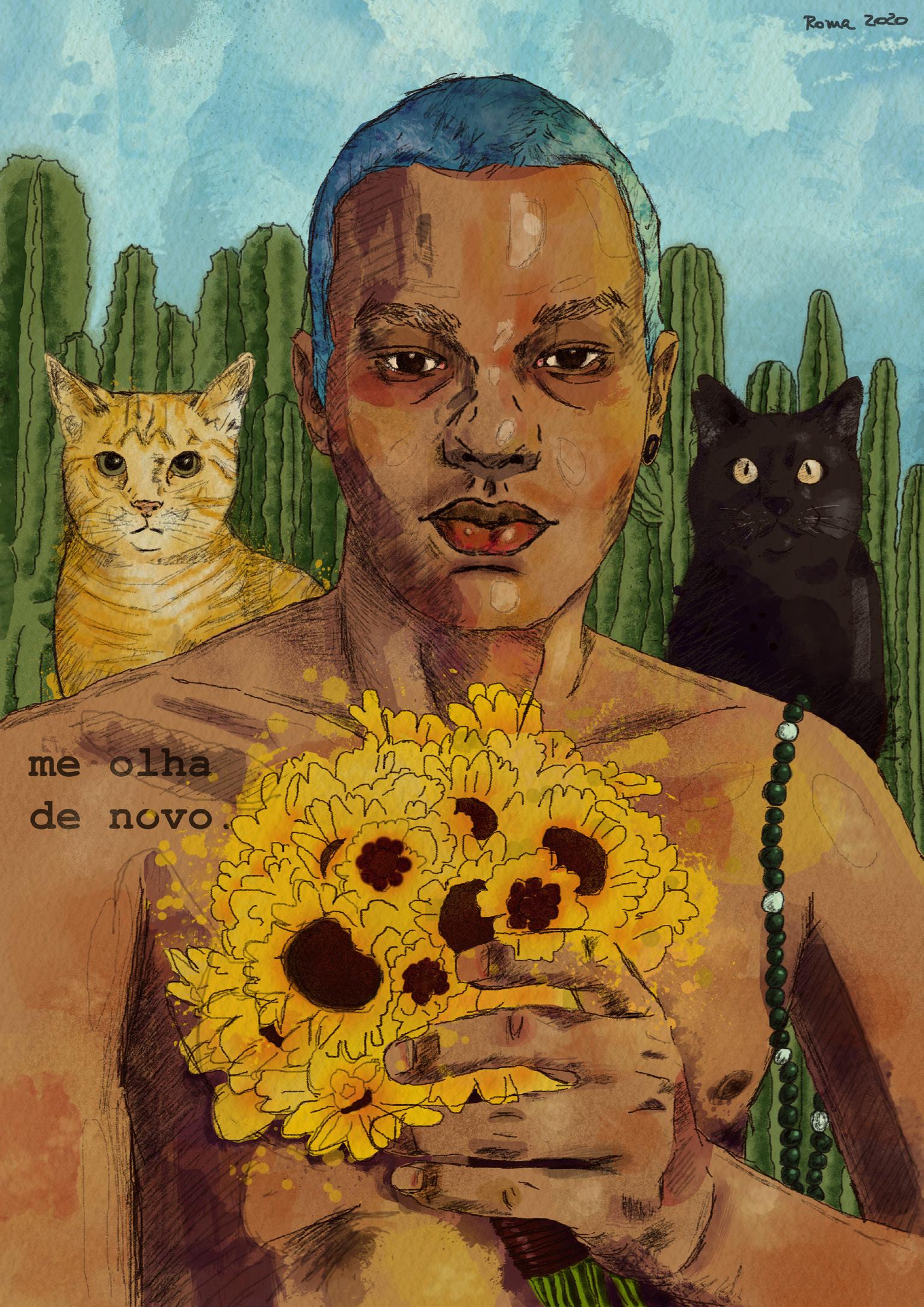 A primeira obra de ilustração digital do artista é o retrato do seu melhor amigo. Esta captura alguns dos principais elementos do universo sentimental e social da pessoa retratada: seu amor por gatos e cactos, sua flor preferida, seu cabelo colorido da época e sua religiosidade.