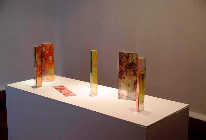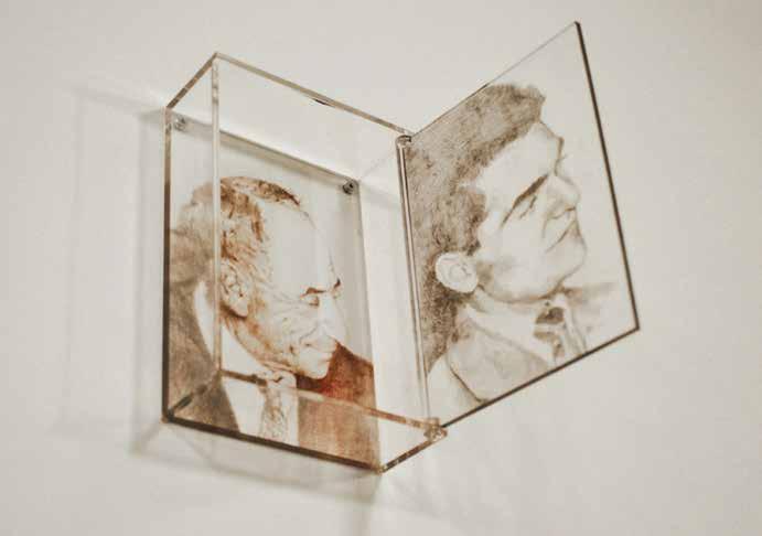 Pages 44-45 : Cuando las palabras ardan en la chimenea, pointe sèche sur plexiglas. Ces œuvres font partie de l’installation solo show au musée Cabildo, Montevideo, Uruguay, 2017