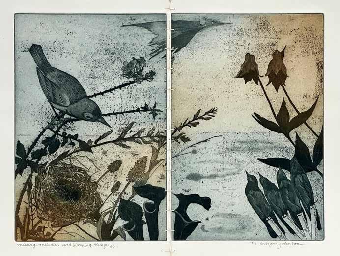 Une autre pensée me vient à l’esprit alors que j’écris cet éditorial. Le travail des graveurs peut être divisé en deux catégories très distinctes : l’abstraction et la narration. Le processus créatif du graveur et les perceptions du collectionneur sont très différents, même si la passion et le plaisir impliqués sont égaux dans leur effet sur nos vies. Au fil des ans, j’ignore combien d’estampes j’ai vues, lors des jurys de sélection, des expositions, des visites d’ateliers et chez les collectionneurs. Parfois de très grandes impressions numériques ou abstraites en linogravure – souvent de tons très sombres –, mais aussi de délicates gravures miniatures ou des manières noires dont les détails éblouissants racontent des histoires. Bien sûr, j’ai des préférences personnelles, mais je pense avoir toujours découvert et observé ces impressions avec un esprit ouvert. Le monde de la gravure est un endroit merveilleux. Il continue à produire des œuvres qui suscitent la réflexion, sont divertissantes et éclairantes, ajoutant considérablement à notre appréciation des compétences extraordinaires que l’esprit créatif de l’artiste est capable d’utiliser pour exprimer sa vision. L’avenir est inconnu, mais la gravure se poursuivra et des approches inédites seront découvertes, comme dans tout art vivant qui se renouvelle.