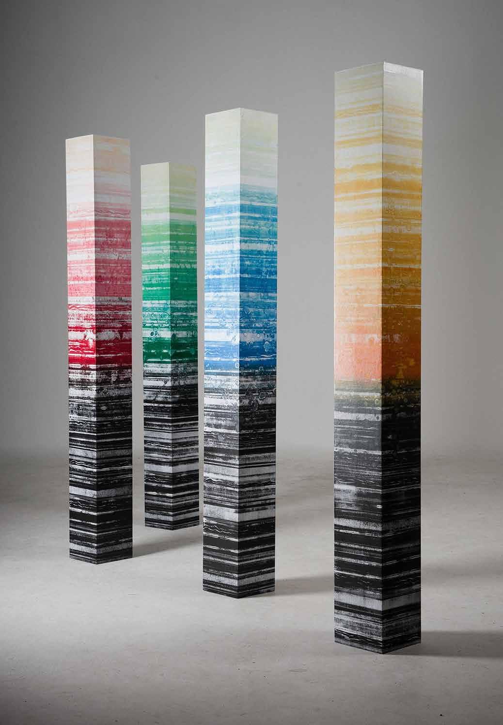 Page 56 : de la série Sonde, 2014, objet graphique, impression sur aluminium avec la technique de la matrice liquide, 340 × 68 × 68 cm