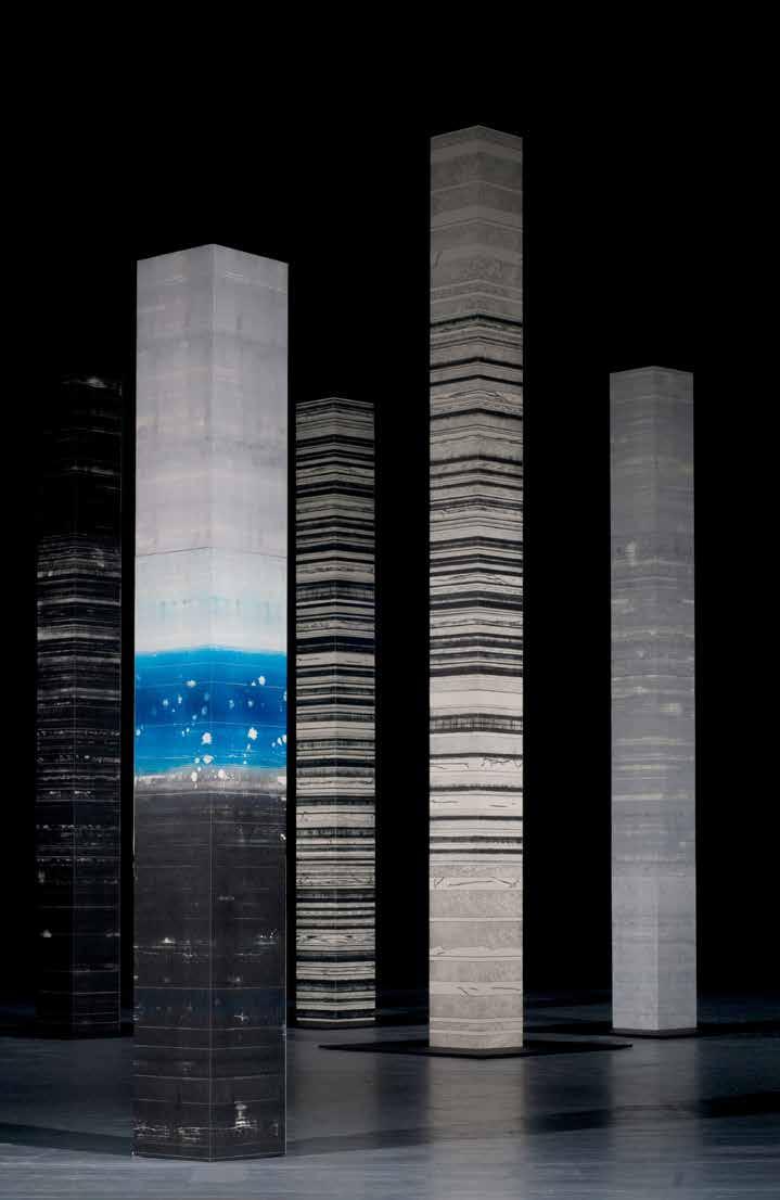 Page 52 : De la série Sonde, 2010, objets graphiques (aquatinte, manière noire, pointe sèche, technique personnelle), 240 × 25 × 25 cm, 3 pièces de 320 × 25 × 25 cm, 400 × 25 × 25 cm