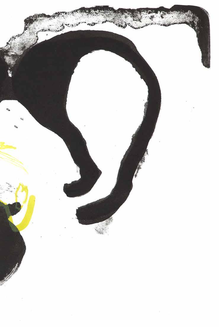 La notion de trace, de choses qui réapparaissent, est dans le médium. Pour pouvoir revenir sur la pierre avec une deuxième couleur, il faut poncer. J’aime garder un fantôme du tirage précédent – c’est comme cela qu’on appelle l’ombre du dessin qui reste sur la pierre tant qu’elle n’est pas entièrement poncée. Cette forme peut remonter à l’impression et réapparaître dans l’image suivante ; je peux jouer avec les fantômes, décider de la place que je leur laisse.