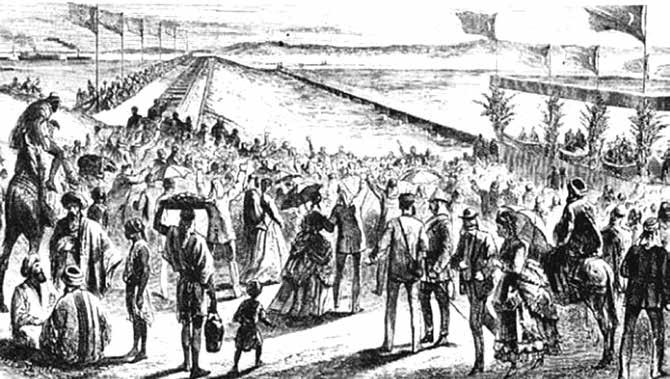 Lucrările au intrat apoi pe un făgaş normal, dacă exceptăm miile de salahori egipteni care au continuat să moară în urma condiţiilor de lucru de la canal, ajungîndu-se la inaugurarea solemnă care a avut loc la 17 noiembrie 1869, în prezenţa unui număr mare de invitaţi din toată lumea: artişti, scriitori, savanţi şi reprezentanţii încoronaţi sau neîncoronaţi a peste 40 de ţări. S-a realizat o lucrare impunătoare, de 161 km lungime, cu secţiune trapezoidală şi lăţimea 70-120 m, cu maluri consolidate cu diguri puternice şi cu o adîncime care va atinge 10,8 m pe toată lungimea canalului, după amenajările din 1956. Rezultatele economice au fost pe măsura amplorii lucrărilor. Reţeta anului 1910 însuma 5.217.460 lire sterline, beneficiu uriaş pentru cei deveniţi proprietarii acţiunilor companiei. După 1875 nici o acţiune nu mai era deţinută de statul egiptean sau de cetăţenii săi.