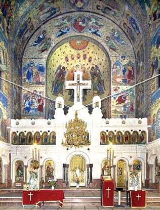 Cel răstignit pe-a crucii suferință, Cu spini pe cap, ca înrăit tîlhar. De două mii de ani întru credință Sorbim lumina sfîntă din altar.