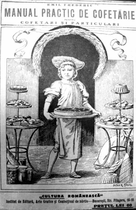 În anul 1928, Emil Frederic, cofetar bucureștean mult umblat prin lume și școlit la marile case de profil din Franța, Elveția, Germania, Egipt și America, publica