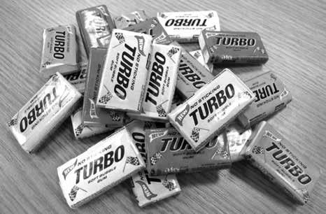 Guma Turbo este probabil cea mai celebră dintre așa-numitele, pe atunci, „gume cu surprize”. Surprizele constau în imagini imprimate pe hîrtiuță lucioasă. Imaginile (mașini în cazul Turbo) alcătuiau adevărate serii, astfel că era încurajată colecționarea lor. Nu de puține ori, timbrele din vreun clasor erau nevoite să facă loc surprizelor cu fotbaliști, actori, benzi de desene animate, mașini, avioane sau tancuri. Cele din urmă, fără a exclude mașinile, erau specialitatea gumelor produse de firma Ülker, tot din Istanbul. Țin minte că eu mă specializasem la un moment dat pe