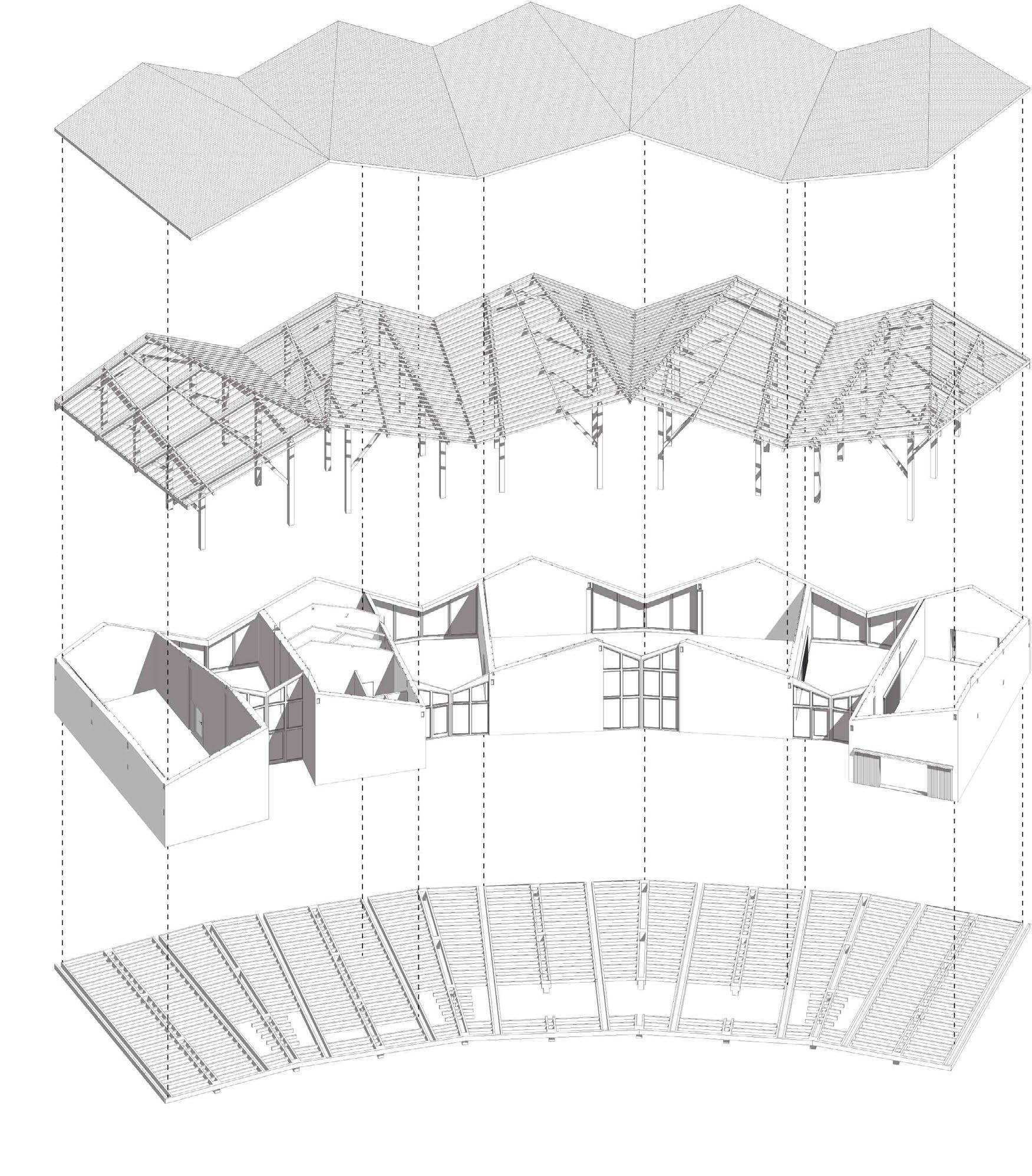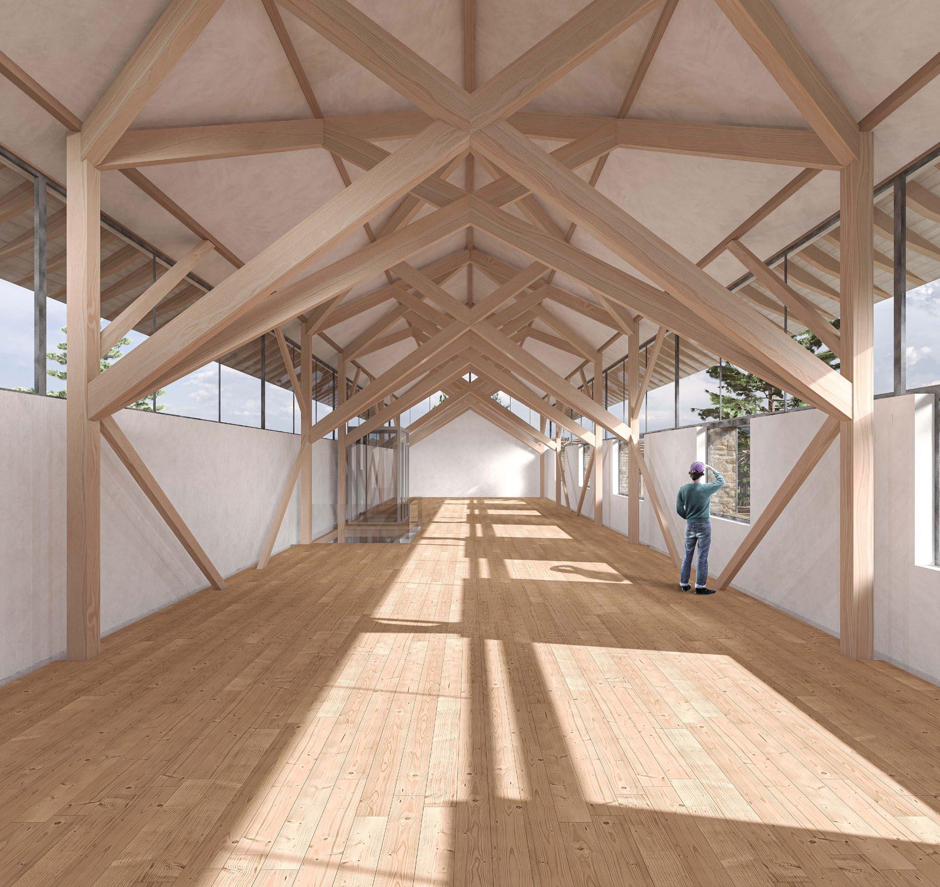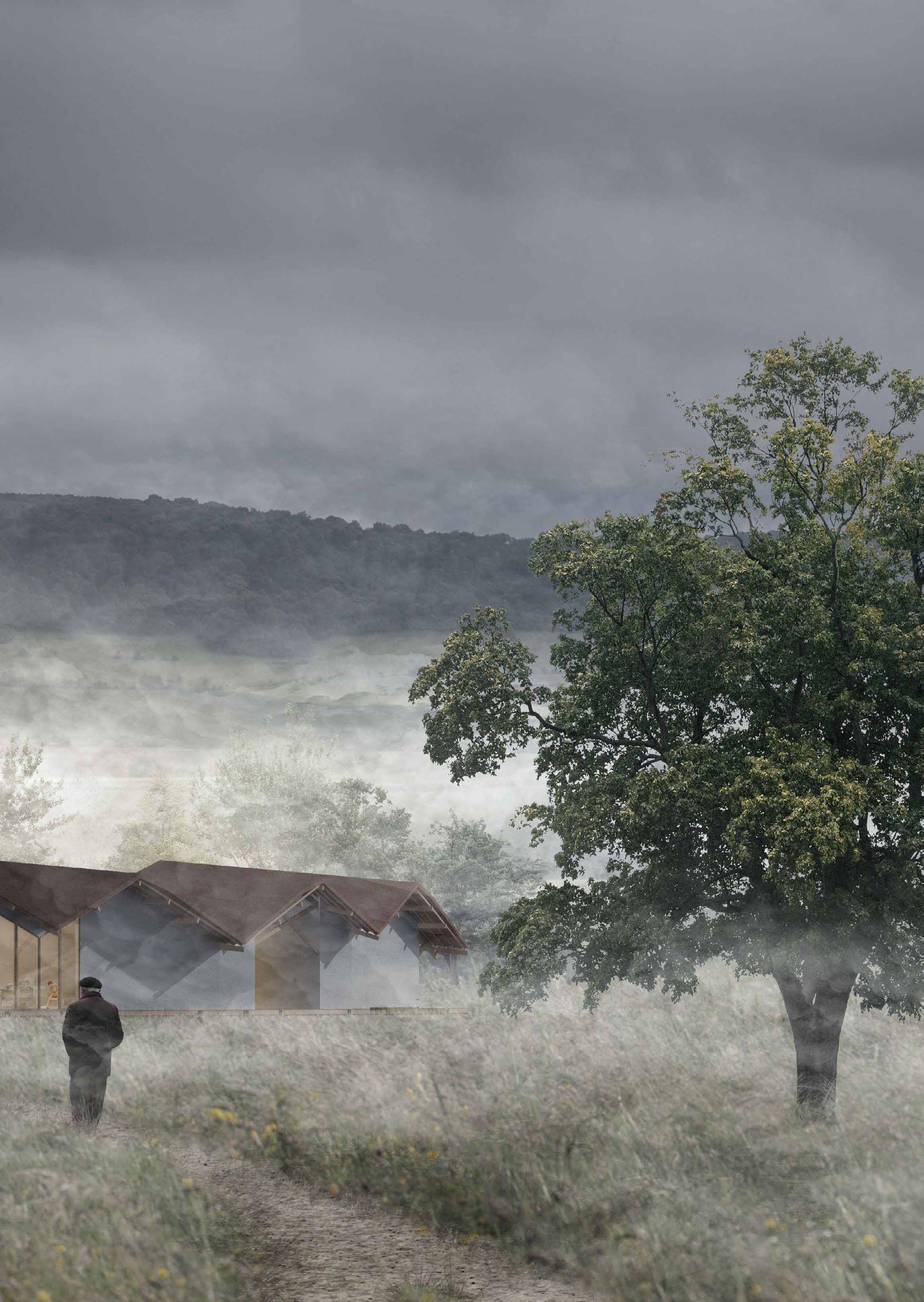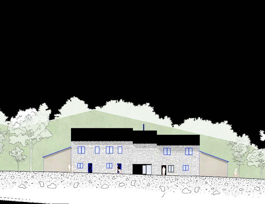 My response follows a hamlet layout, with elements dispersed over a territory in order to create balance and avoid centralized development. This archipelago of structures prompts visitors and residents alike to wander and reflect within the territory between the project sites. The main sub-project sites are based on the re-habilitation of existing structures to both limit resource consumption and embed the project in the stylistic continuity of the local architectural vernacular.