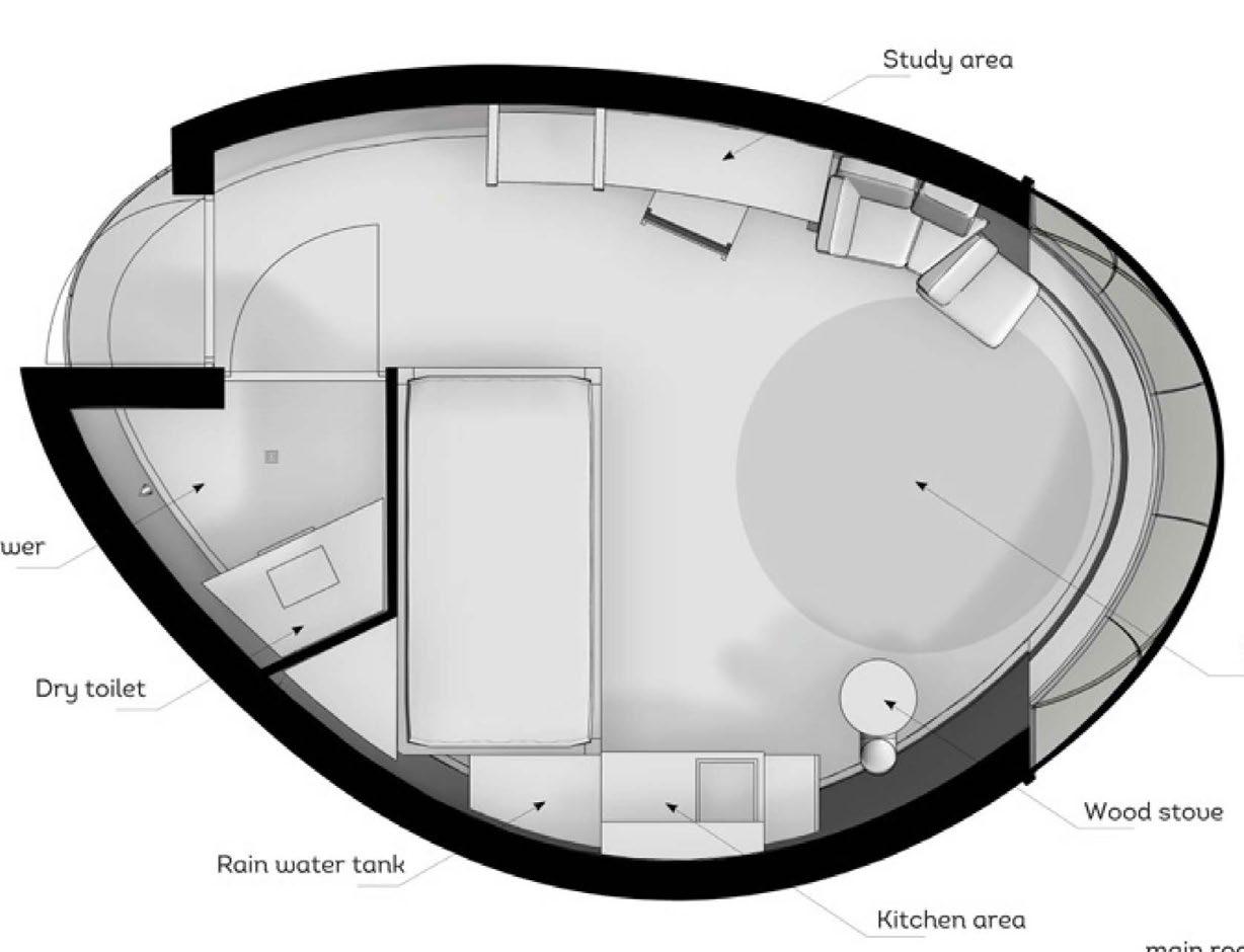 outer shell wooden frame structure main insulation inner cladding interior layout