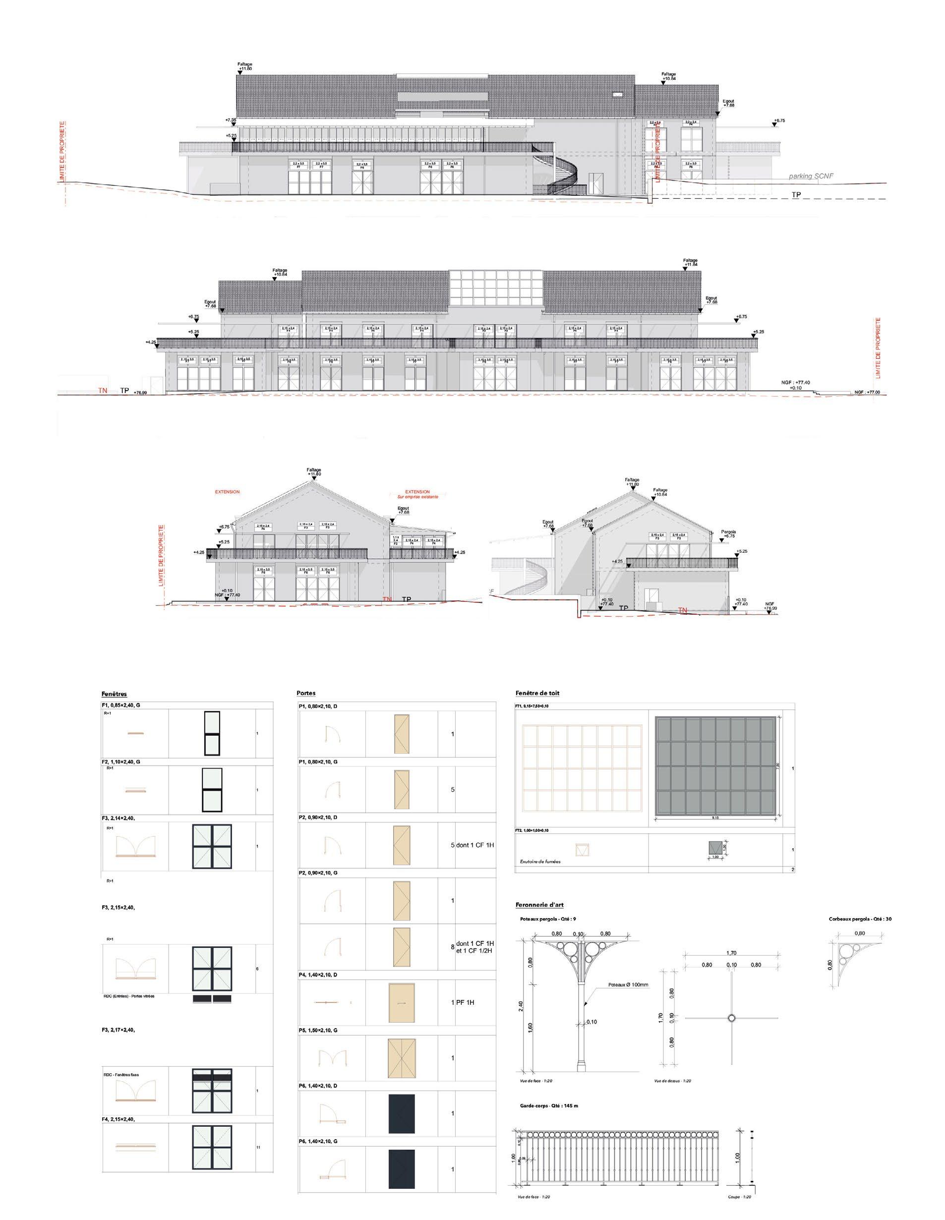 My tasks through this project was to participate in the update of the executions plans while on-site construction was taking place. I produce plans, technical details and an inventory of the doors and windows used in the project.