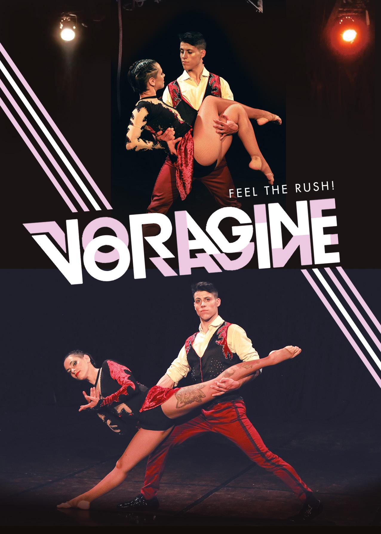 Candela Spinelli y Marcos Garay, como dúo acrobático Vorágine, combinan sus habilidades para ofrecer una experiencia escénica única. Candela, estudiante avanzada de Artes Circenses, y Marcos, acróbata y músico, dominan disciplinas como equilibrio de manos, aro aéreo, acrobacias en el suelo y dúo de cuerda lisa. Su pasión por el circo cautiva al público con su talento y coordinación en cada actuación.